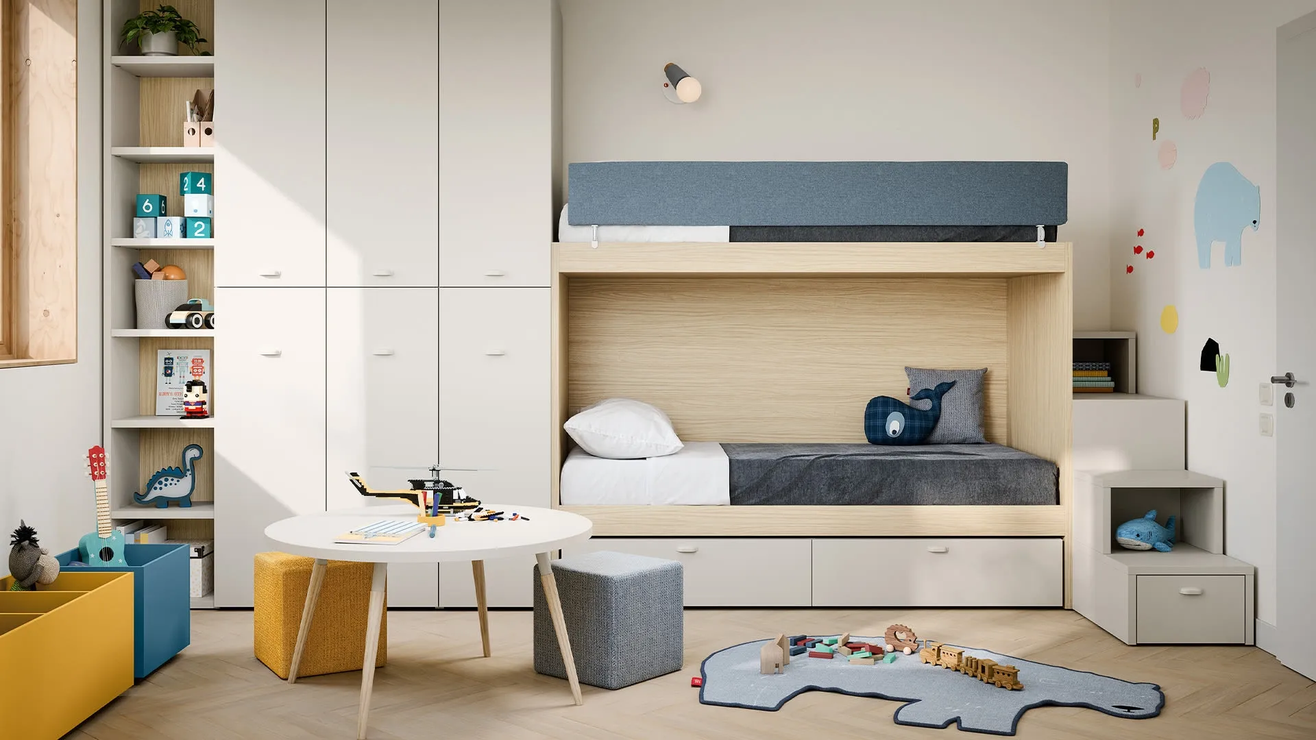 Con questa cameretta Castello Nuk Nidi, tra le soluzioni con letti a castello, potrai ammobiliare stanze moderne per bambini.