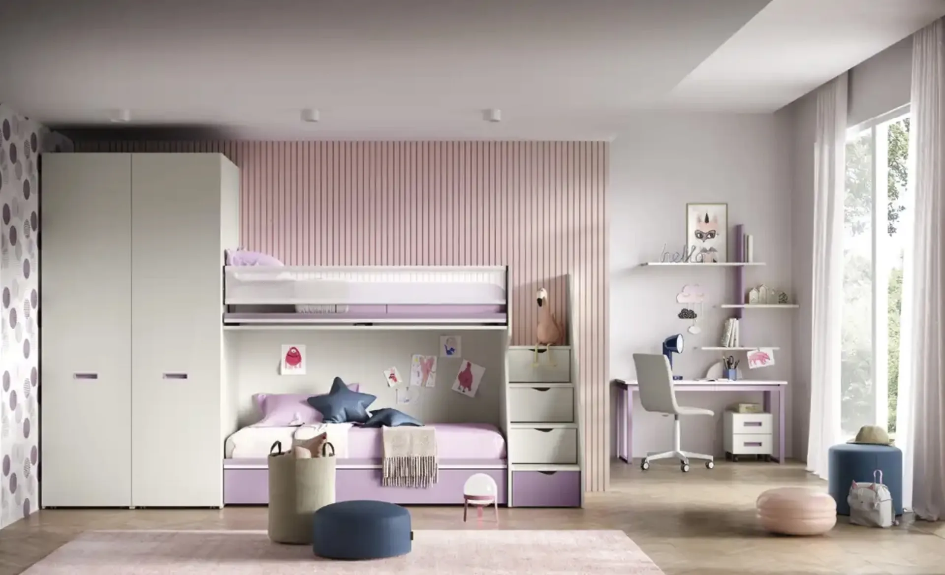 Arreda stanzette moderne con le Camerette a soppalco Moretti Compact Camerette! Il modello K103 in melaminico è per bambine.