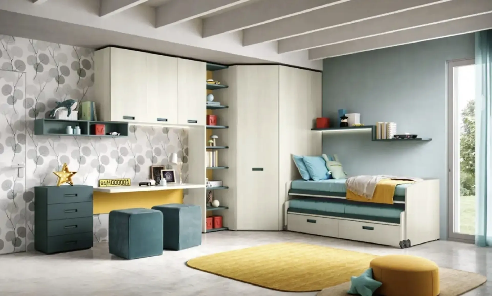 Camerette con letti scorrevoli per bambini: scopri il modello in melaminico K105 di Moretti Compact Camerette per stanzette moderne.