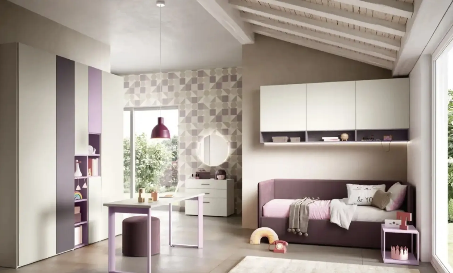 Clicca e scopri di più sulla cameretta per bambine K106! Le Camerette componibili Moretti Compact Camerette ti attendono.