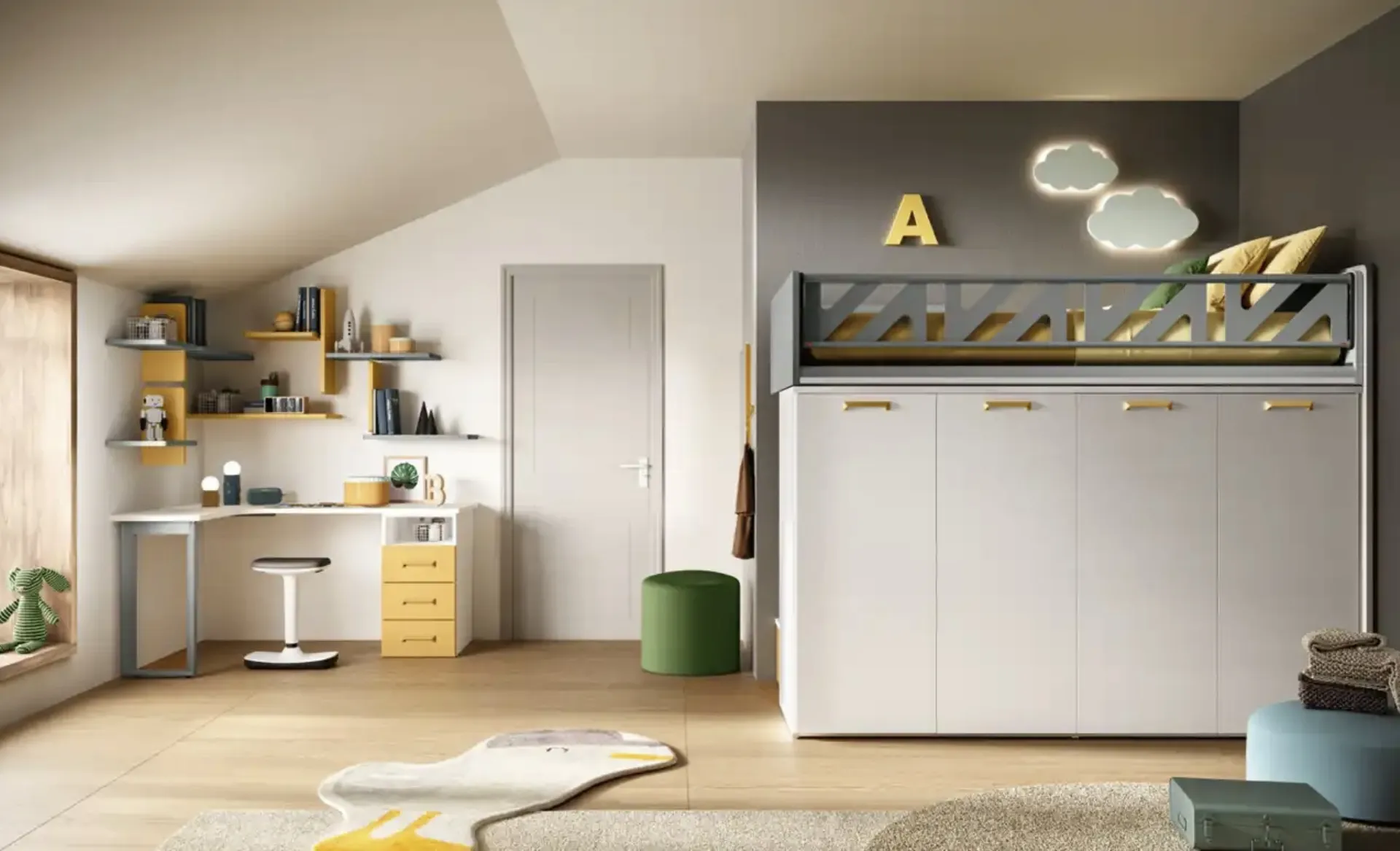 I nostri bambini trascorrono molte ore della giornata nelle loro camere da letto: rendile adatte per dedicarsi alla scuola, divertirsi e rilassarsi ogni giorno. Proponiamo in negozio molteplici Camerette a soppalco moderne per bambine del marchio, ideali per accompagnarli durante il loro sviluppo. Le Camerette dei nostri bambini sono lo spazio in cui passeranno i loro primi anni giocando e sognando, quindi è imprescindibile che lo spazio sia funzionale. Nel nostro showroom ci occupiamo di seguirti dalla scelta dei mobili per la camera alla progettazione del luogo nel quale i tuoi bimbi cresceranno, giocando e sognando.