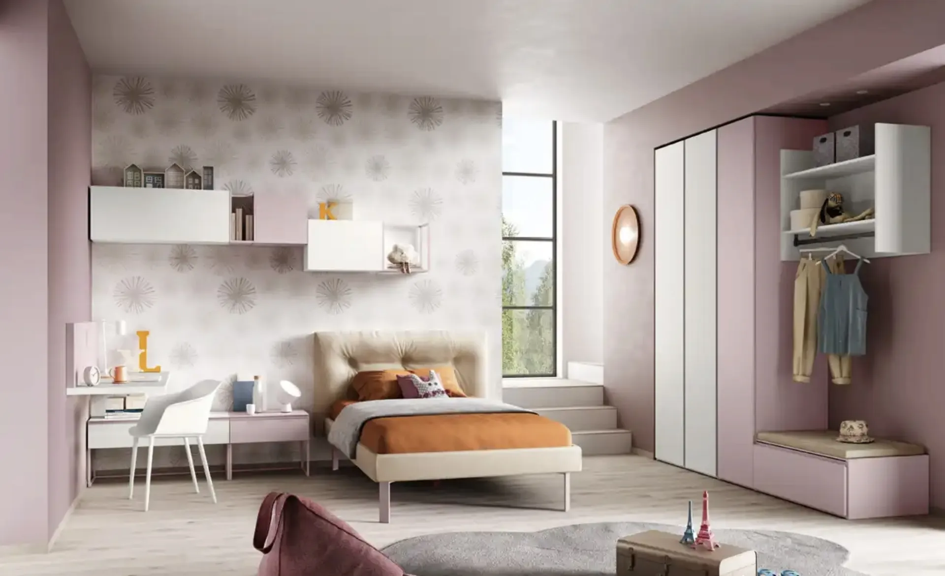 Arreda stanzette moderne con le Camerette componibili Moretti Compact Camerette! Il modello K121 in laccato opaco è per bambine.