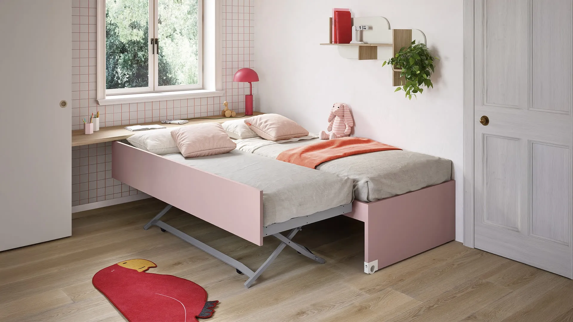 Con questa cameretta Salvaspazio Letti Estraibili Nidi, tra le soluzioni salvaspazio, potrai ammobiliare stanze moderne per bambine.