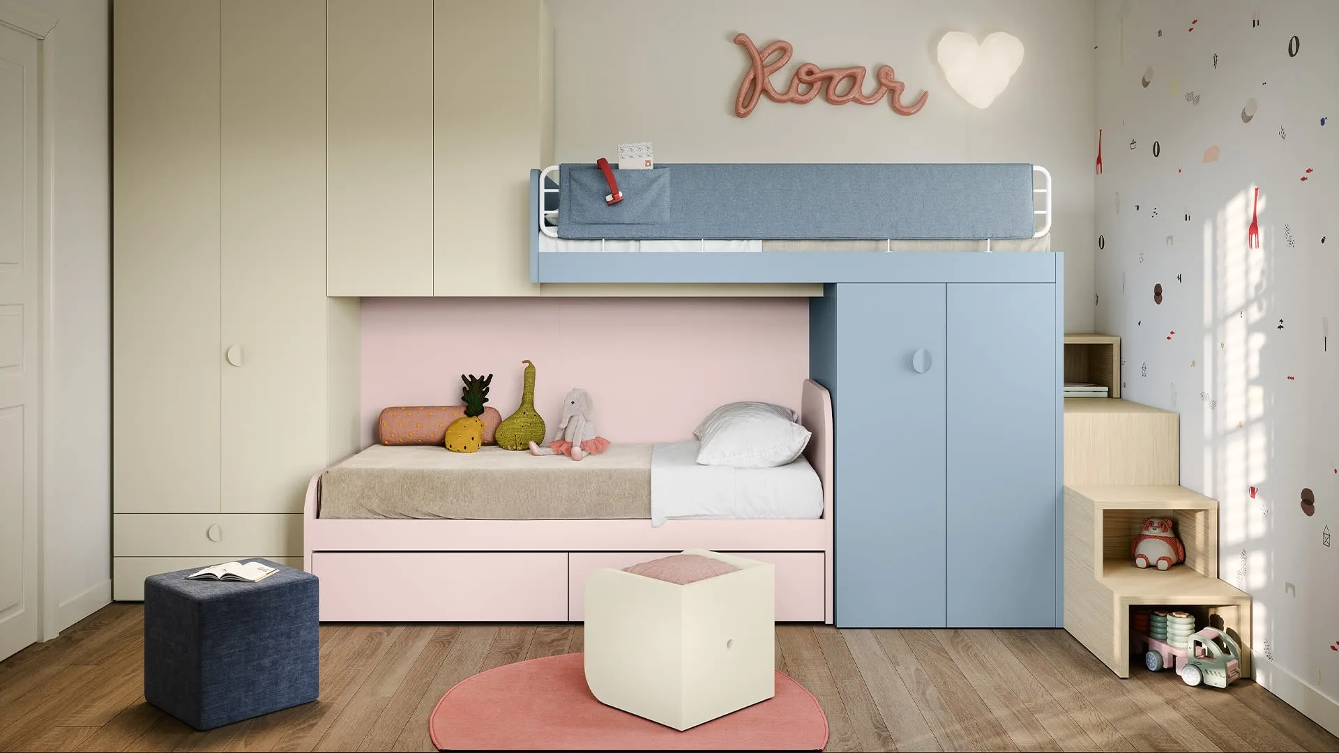 Camerette a soppalco per bambini: scopri il modello in melaminico Soppalco di Nidi per stanzette moderne.
