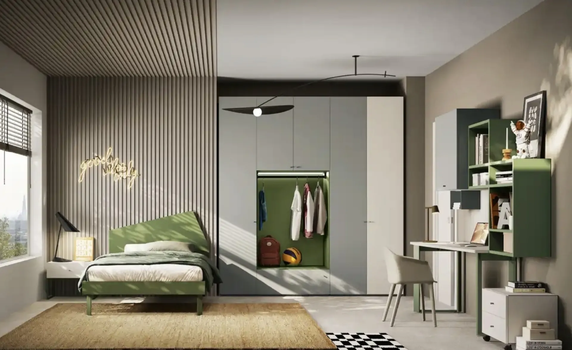 Arreda stanzette moderne con le Camerette componibili Moretti Compact Camerette! Il modello Y106 in laccato opaco è per ragazzi.