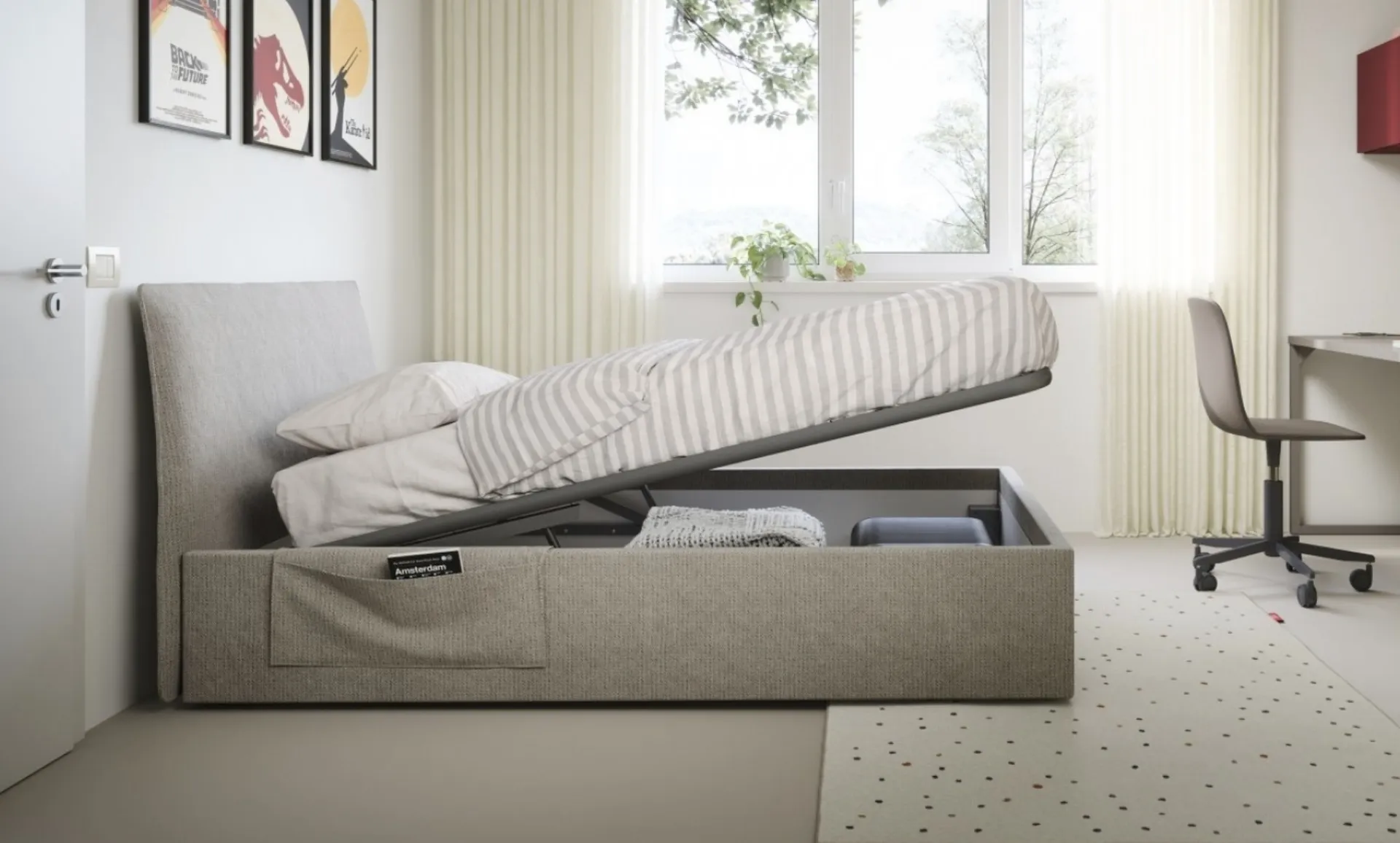 Il Letto singolo Flare di Nidi nella fotografia è ideale per completare al meglio la cameretta dei tuoi figli, abbinandosi alla perfezione con armadi e comodini, accessori e quant'altro. Contattaci e ottieni informazioni sulla nostra serie di Letti singoli in tessuto: arreda la stanza dei più piccoli come l'hai sempre sognata. Se vuoi mobili e complementi moderni, il letto singolo nella fotografia fa al caso tuo: #appartiene alla@# nostra serie di letti singoli con contenitore.