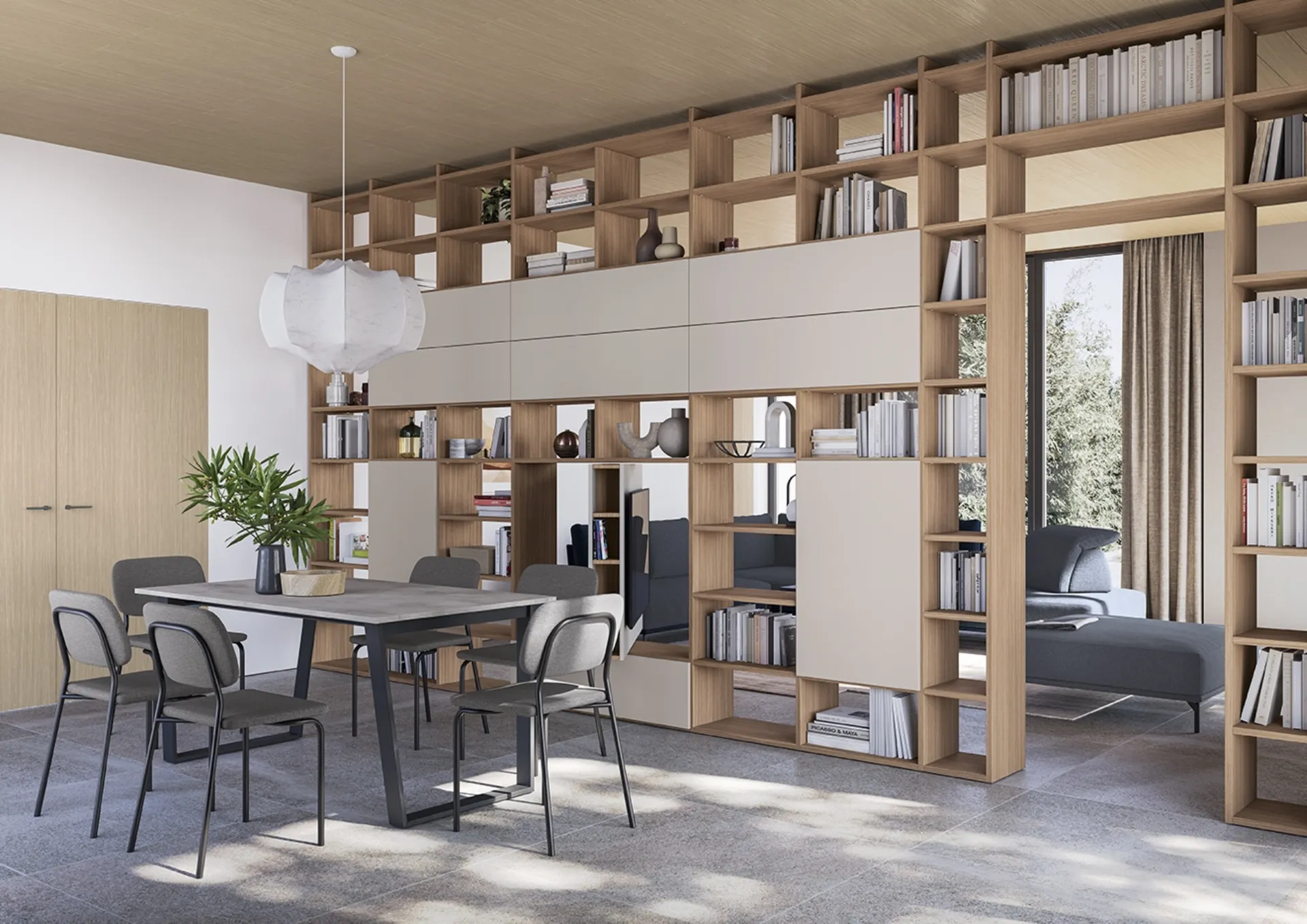 Vuoi rinnovare il soggiorno? Scopri di più sulle librerie moderne divisorie e arreda i tuoi spazi con il modello Infinity L04.