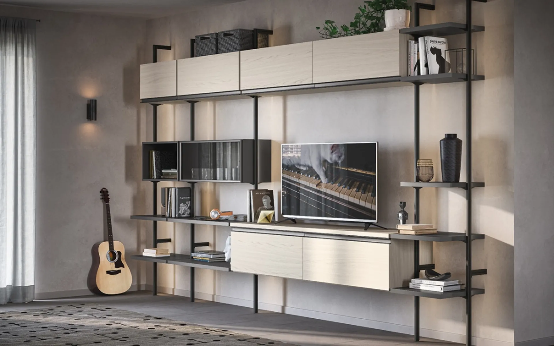 Clicca e scopri le Librerie componibili moderne! Il modello Libreria Uniko Cinquanta3 saprà completare un soggiorno pratico e dinamico.