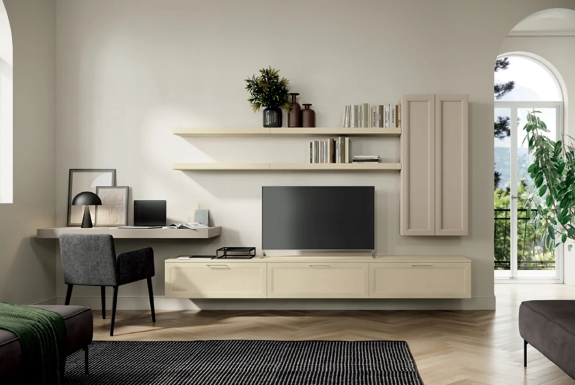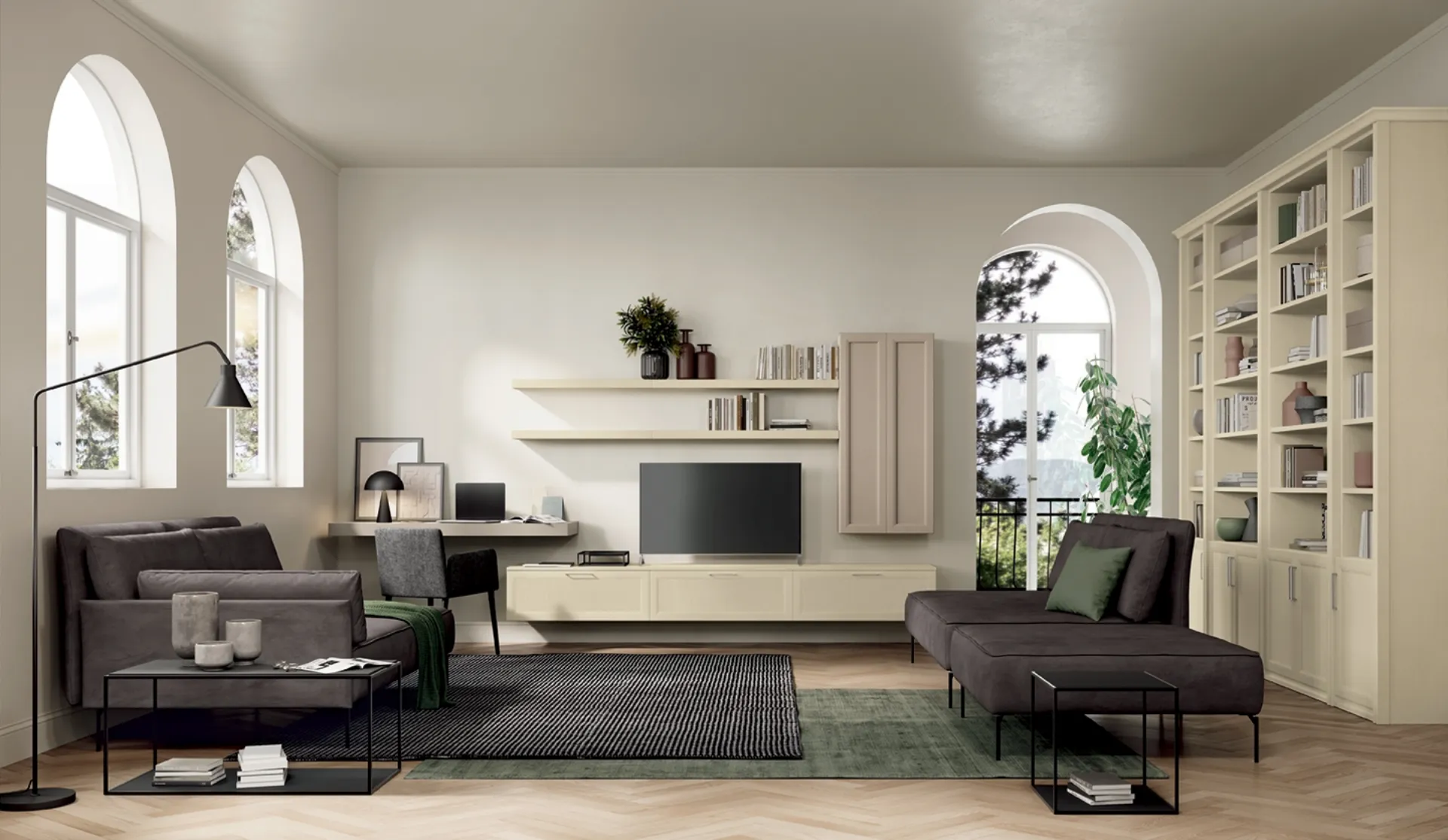 Se vuoi ultimare un living dinamico e operativo dalle linee classiche, ti offriamo la parete attrezzata Arcadia AS004 Colombini Casa.