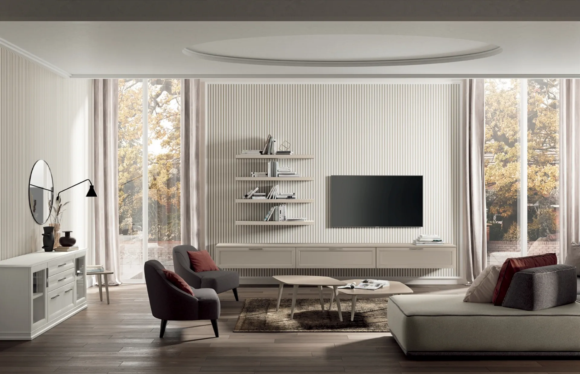 Pareti attrezzate e mobili soggiorno Colombini Casa: clicca e scopri il modello Arcadia AS009 e potrai valorizzare stanze classiche di ogni tipo.