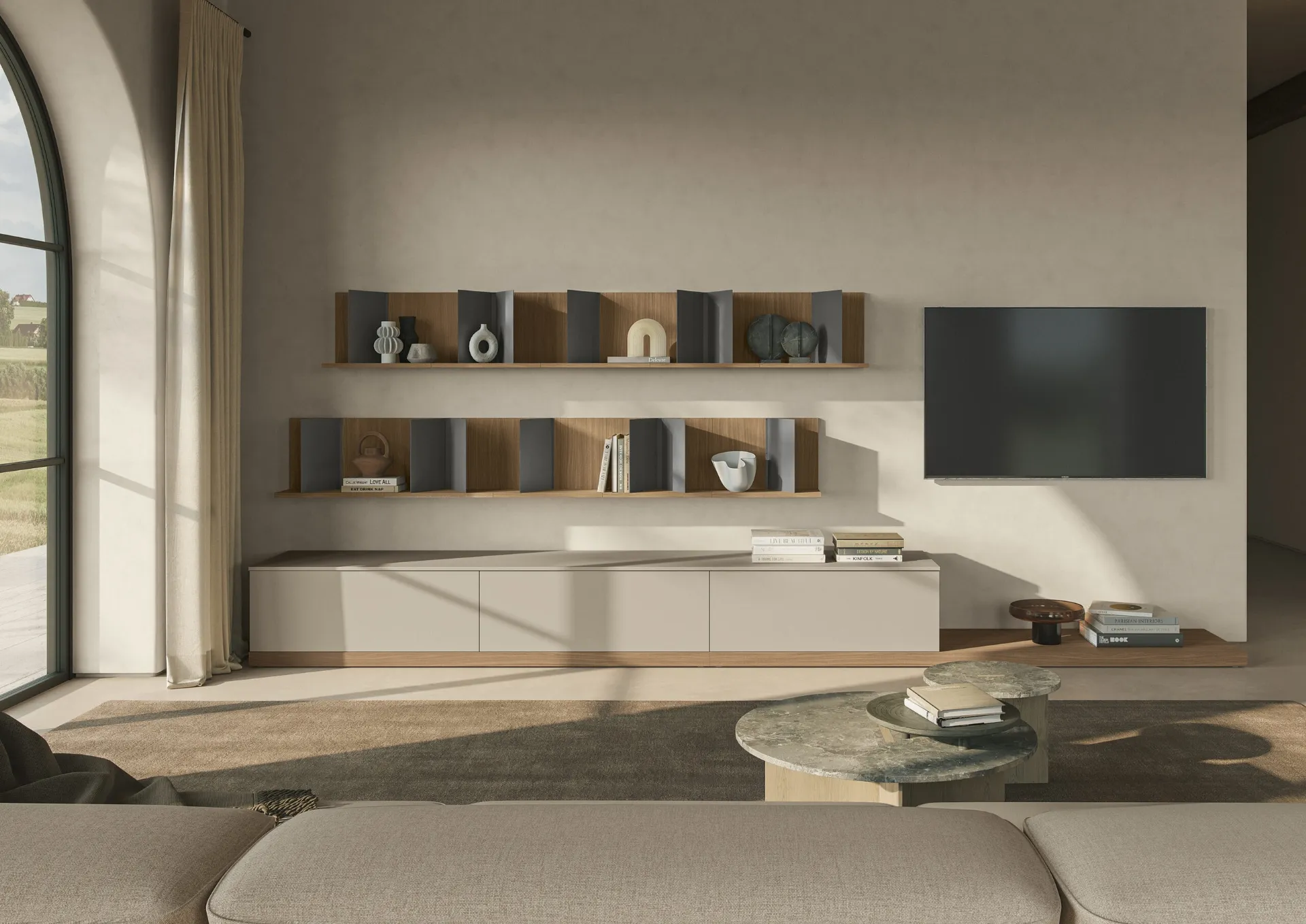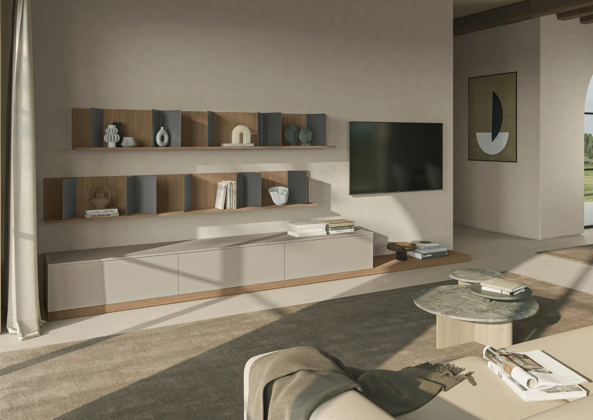 Dato che il soggiorno deve essere uno spazio pratico e bello a vedersi, sono indispensabili alcuni mobili belli e funzionali come le Pareti Attrezzate. La Parete Attrezzata Night & Day L01NS di Colombini Casa in foto è una delle più originali soluzioni d’arredo in commercio: grandi doti di componibilità e le diverse opportunità di progettazione la rendono pratica e sofisticata. Colombini Casa offre a catalogo originali modelli di mobili soggiorno, diversi per stile e conformazioni, finiture e elementi: scopri nel nostro punto vendita l'Arredamento Casa dei migliori produttori. Lasciati stuzzicare da un ricco catalogo di mobili per la zona giorno e troverai la parete attrezzata che fa per te.