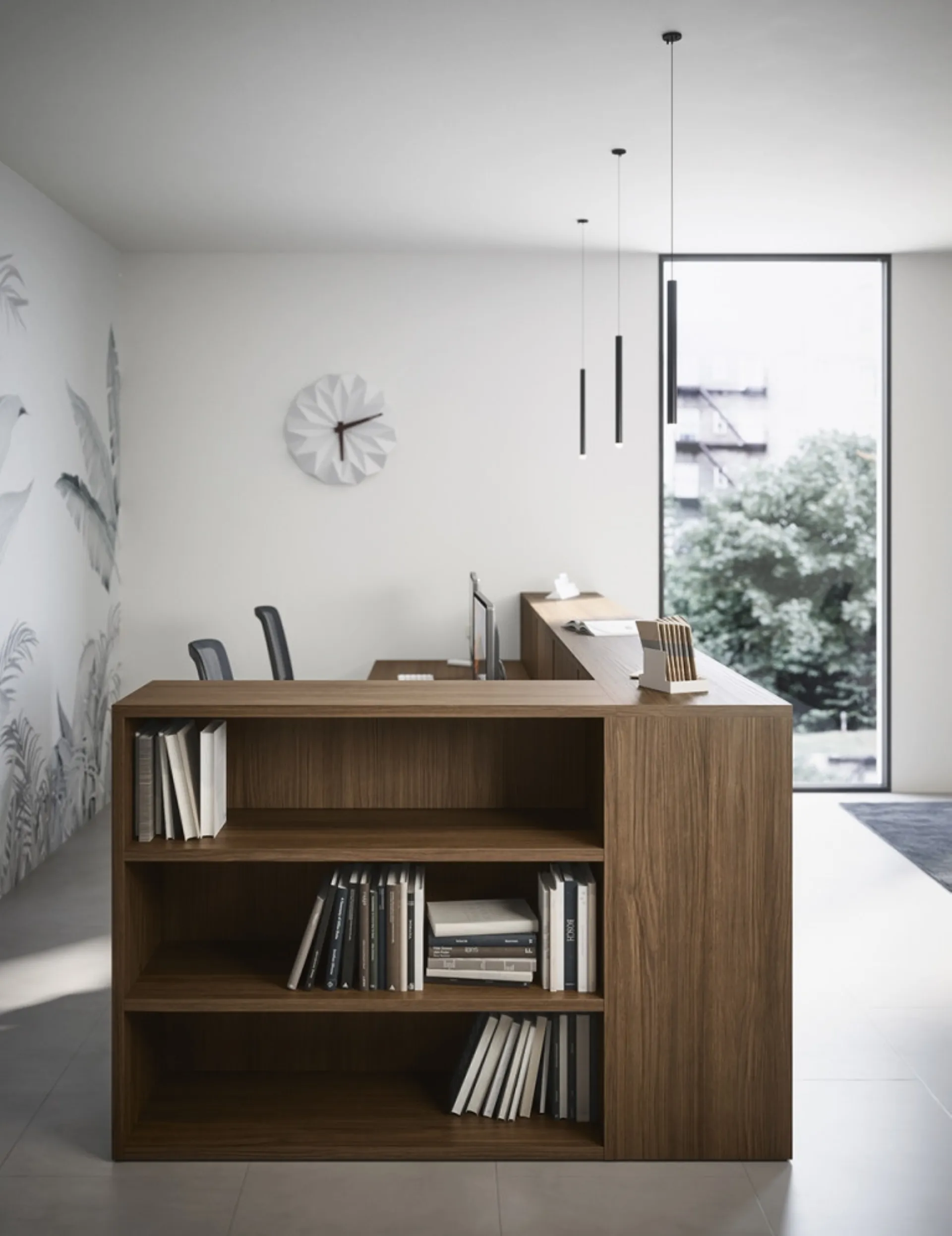 Materiali di prima scelta, una buona resa estetica e linee ben studiate contraddistinguono la ricca serie di arredi per gliambienti lavorativi del marchio Cinquanta3. Bancone Reception 14B di Cinquanta3: ideale per completare gliuffici salvaguardando la comodità di chi ci lavora, con una buona resa estetica. Il rinomato marchio lavora sempre al passo con le esigenze personali, difatti mette a disposizione ogni sorta di Arredo Ufficio in melaminico. Al giorno d'oggi l’Arredo Ufficio deve dare risposta a le esigenze di praticità e comfort per chi svolge il lavoro, quelle di accoglienza e serietà soprattutto per i clienti.