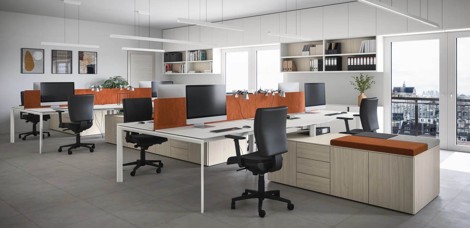 Cerchi Arredo Ufficio delle migliori marche? Scopri le differenti soluzioni di scrivanie operative in melaminico, come il modello Scrivania Operativa 06B di Cinquanta3.